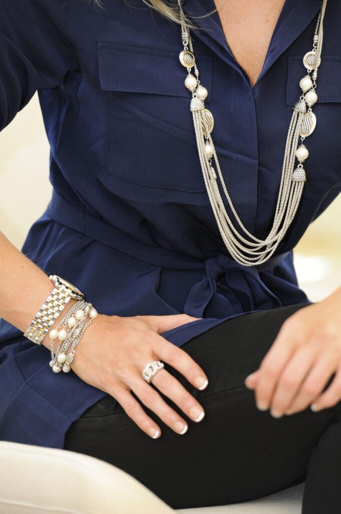 Consider your outfit’s neckline, color, and style. Choose jewellery that complements these elements while creating a focal point.